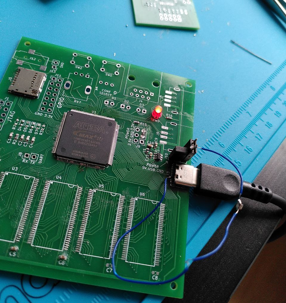 I was already familiar with FPGAs. About ten years ago, I bought a board with Cyclone IV and tried to write my own processor in Verilog. It had a “unique” architecture that was completely incompatible with anything else on Earth.