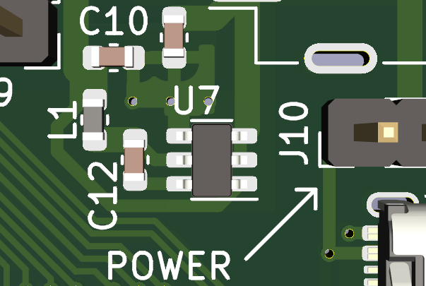 - The voltage regulators (a 5V to 3.3V switching regulator and a 3.3V to 2.5V linear one) were connected to the rest of the circuit using jumpers. This meant if I botched the soldering and created a short circuit under the FPGA, I could at least isolate and check the power-related part. It also gave me test points for examining with a multimeter.