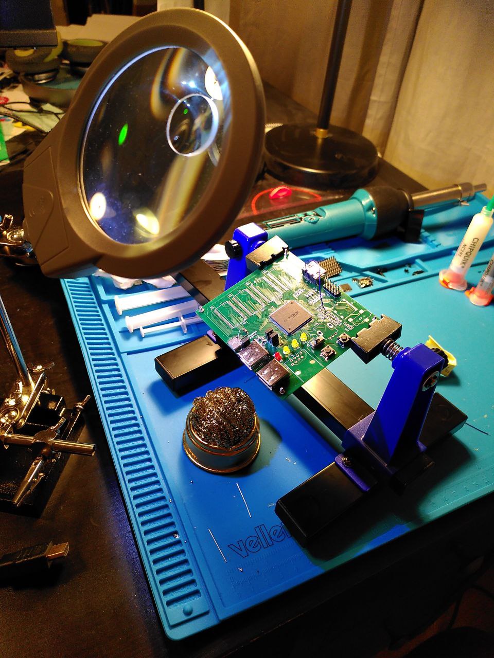 My previous soldering experience dated back to my school days. The peak of my achievement back then was working with microcontrollers in DIP packages. I remember a failed attempt to build an AVR programmer (which involved a single SOIC chip, if I recall correctly). Looking back, the 60-watt “fire stick” I found in grandfather’s toolbox was probably poorly suited for fine electronics work, but for some reason, it never occurred to me to find a better tool back then.