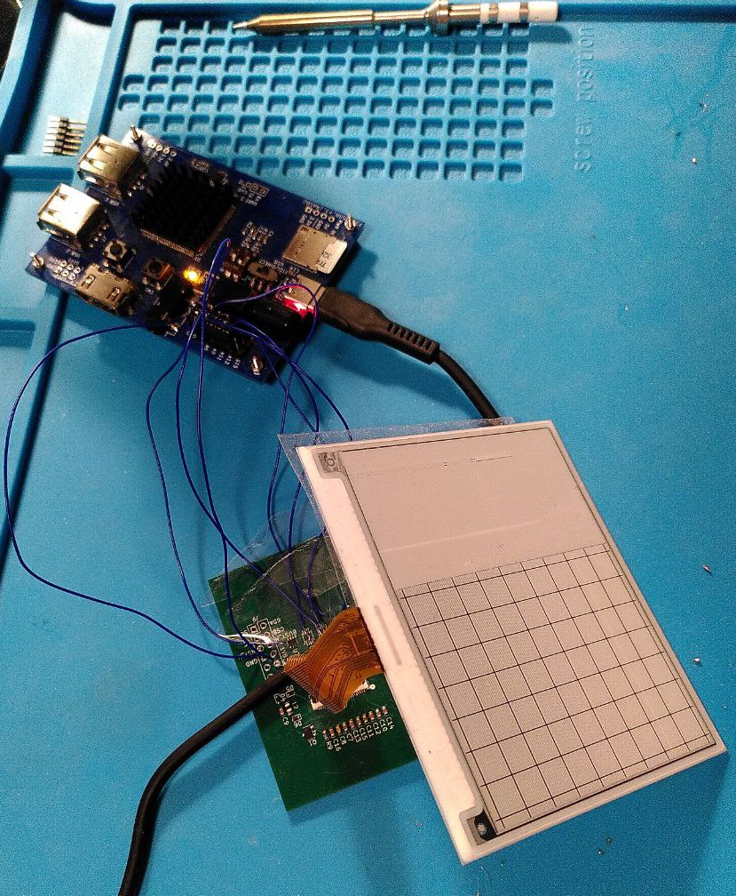 And… It works! The screen resolution is 400x300 pixels. Enough to show some text.